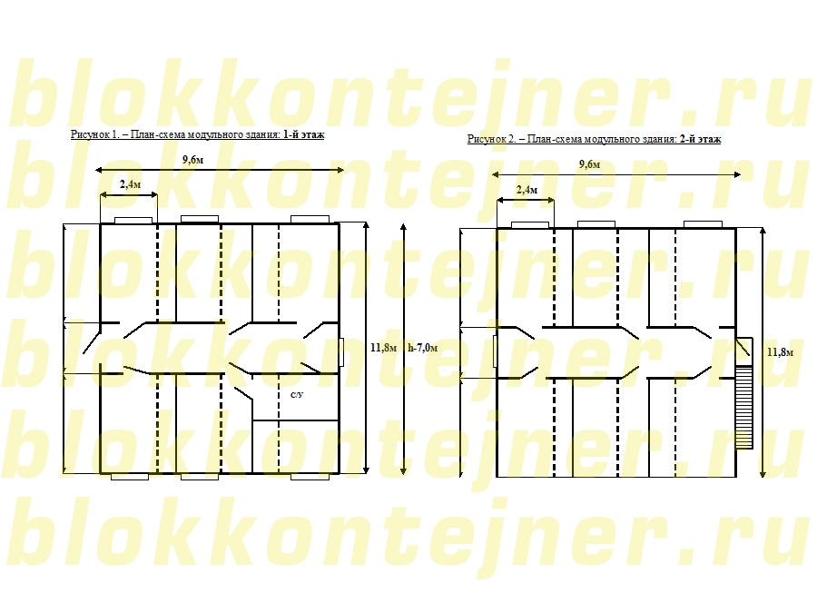 Модульное здание «Офис»   в 2-этажа, размер: (11,8 *9,6*7,0м) состоит из 16 единиц БК размер 5,0*2,4*2,9м: